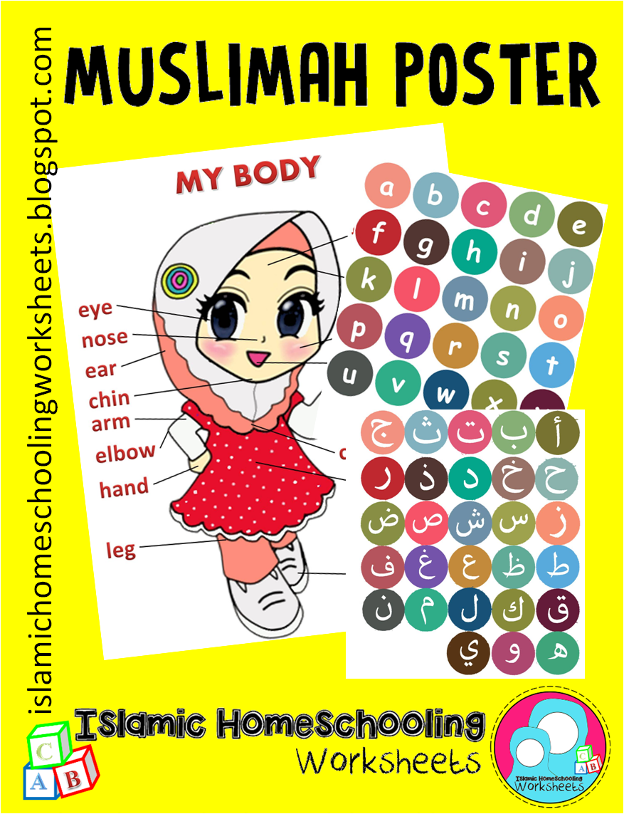 Islamic Homeschooling Worksheets Poster Badan Islamik Abc 123 Dan