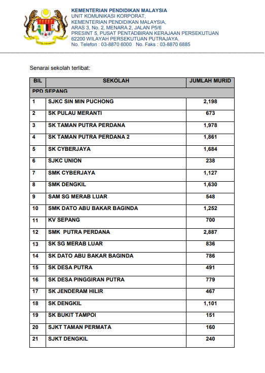 18 September 2019 Senarai Sekolah Tutup Di Selangor Akibat
