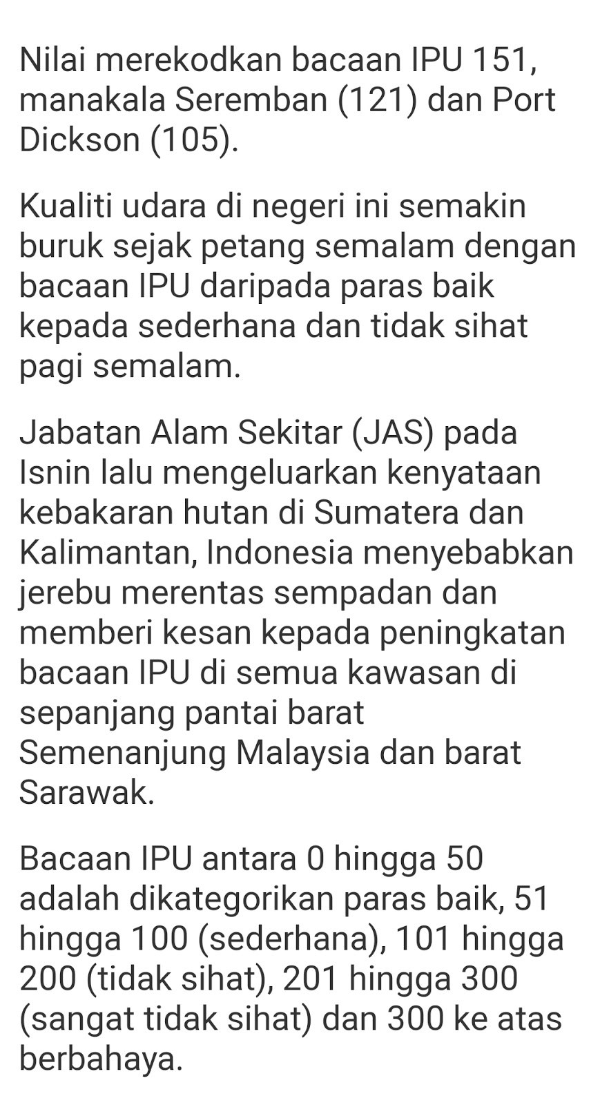 Jerebu 21 Kawasan Catat Ipu Tidak Sihat Selangorkini