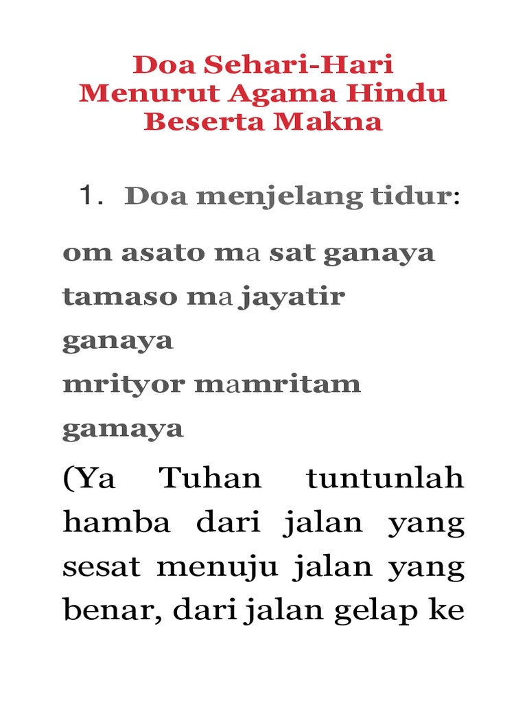 Doc Doa Sehari Hari Menurut Hindu Doa Sehari Hari Menurut Hindu