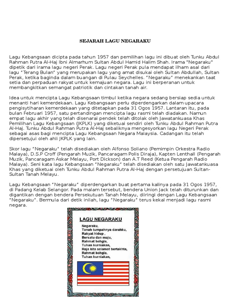 Sejarah Lagu Negaraku Docx Docx Document