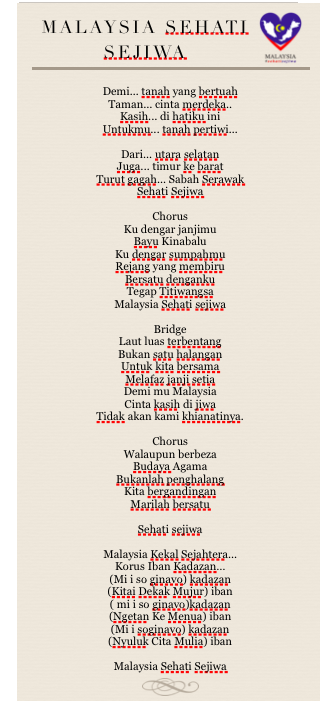 Lirik Lagu Hari Kebangsaan 2015 Sehati Sejiwa
