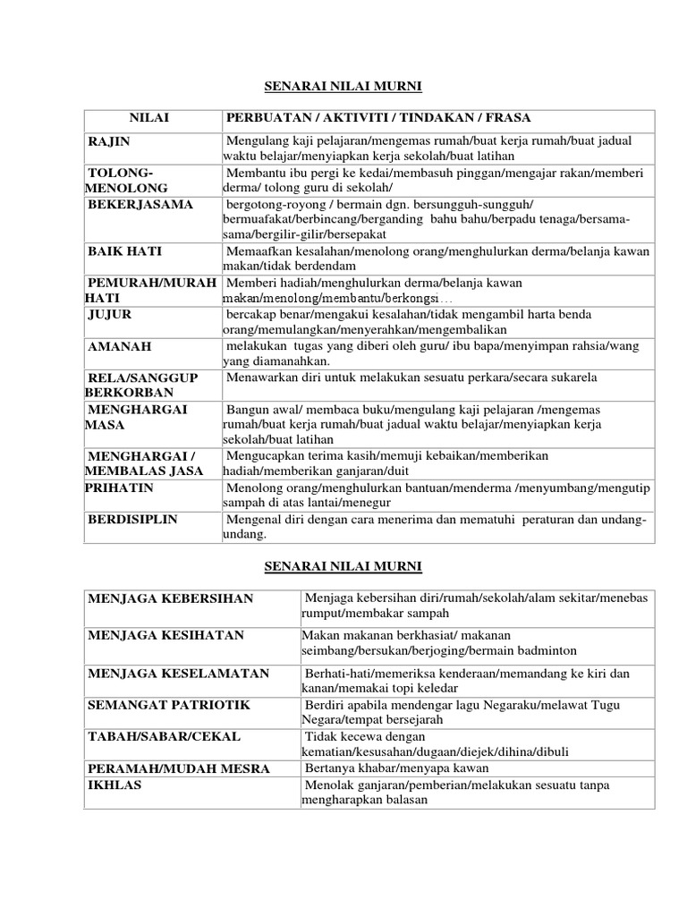 Senarai Nilai Murni