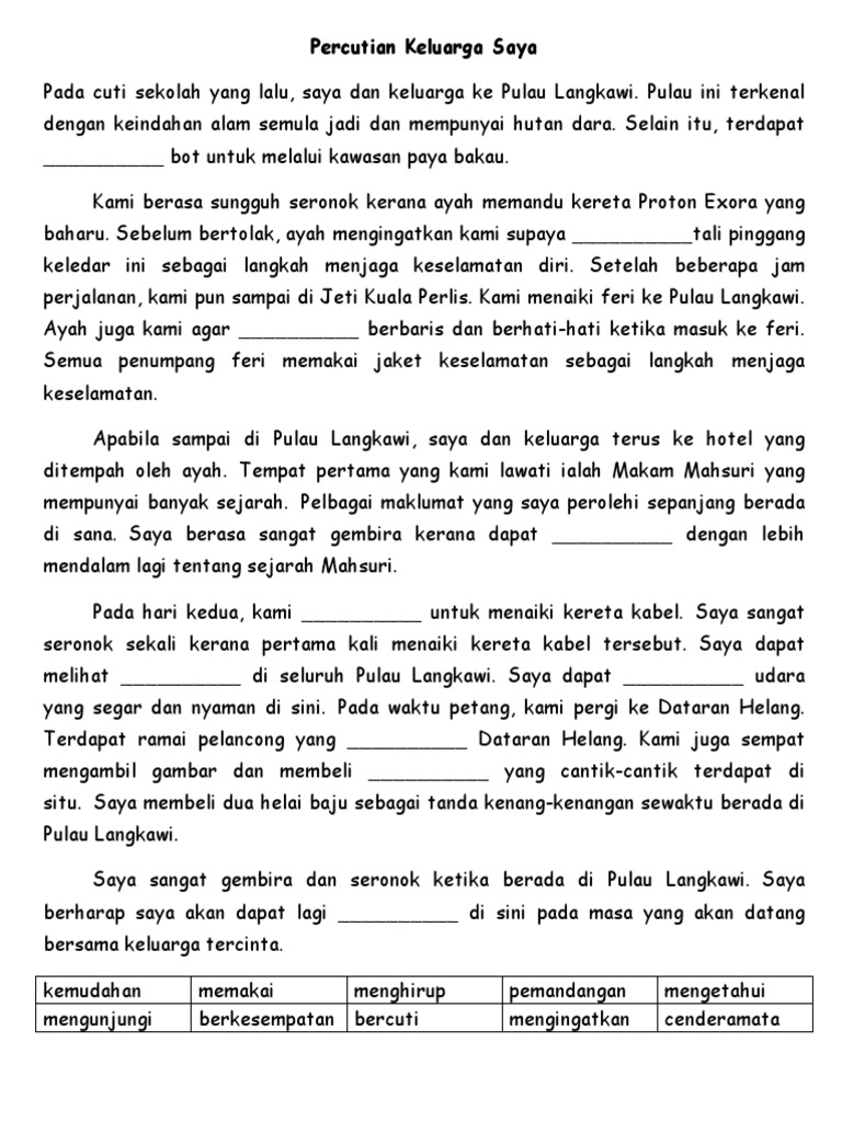 Karangan Bercuti Ke Pulau Langkawi Kbsr Bm Tahun 3