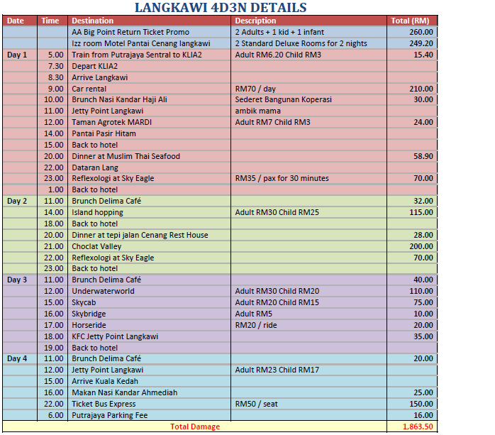 Contoh Itinerary Percutian Langkawi Tiga Hari Dua Malam 3h2m Travel Eat Lifestyle Blog