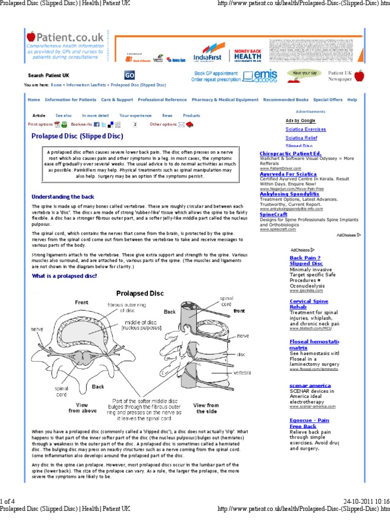 Prolapsed Disc Slipped Disc Health Patient Uk Back Pain Clinical Medicine Free 30 Day Trial Scribd